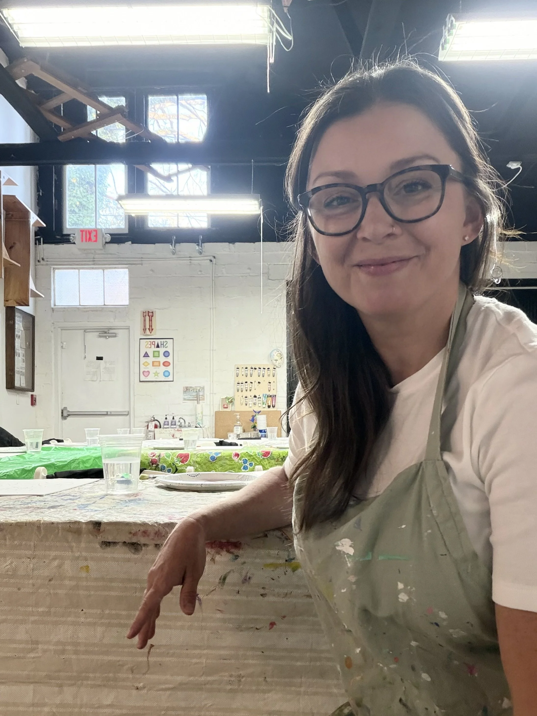 I believe art is for everyone. It can bring people together, and has the ability to put the artist in touch with themselves. When we learn to let go of perfection, painting can be both healing and very meditative. I began drawing and creating from a young age, and enjoy sharing the joy of creating with others. I’m excited to resume art instruction, focusing on making creative expression accessible and enjoyable for young artists. Building on my experience leading "Color Your Canvas Kidz" at Arts On Main from 2014-2021, and many various community workshops for adults, I'm prepared to help inspire participants of my classes. My approach prioritizes fun, exploration and self expression. Each class has a concept painting, and I empower students to create from their heart. I look forward to sharing a fun, creative, relaxed space with the young artists in our community!