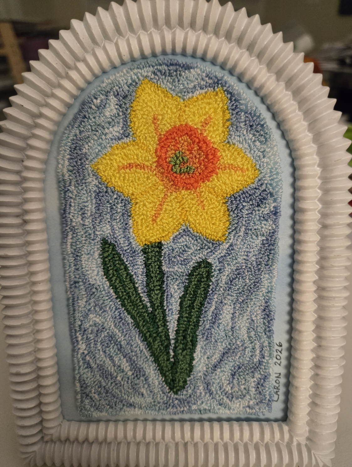 Spring is here! Come and try miniature punch needle, also referred to as Russian punch needle. This centuries old needle art creates beautiful pieces with a richness of texture and color that can be created in a few hours. Resembling miniature versions of hooked rugs, these punched pieces have a wide appeal. Pins, appliqués, dollhouse rugs, and framed or mounted artwork are among the many finished pieces that can be created using only a punchneedle and some inexpensive supplies. In this workshop, we will be using The Ultra Punch brand of adjustable punch needle to create a beautiful daffodil design that you can frame or mount however you wish. All supplies including the above mentioned punch needle will be provided by the instructor for the students to keep. The only optional item you might wish to bring are lighted magnifying glasses.